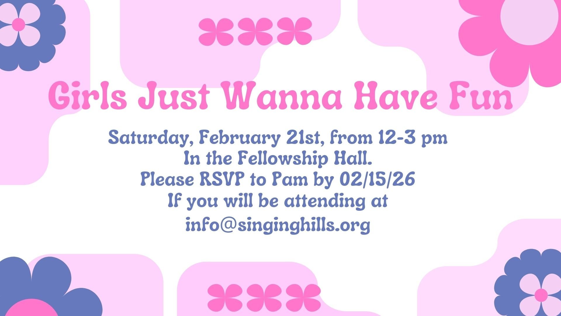 Will be held on Saturday, February 21st, from 12-3 pm. Soup, Tacos, drinks, and cookies will be provided. Please RSVP to Pam McCann at info@singinghills.org by Sunday, 2/15, if you plan to join us!