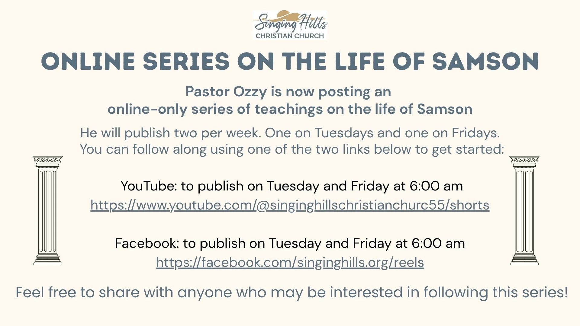 Pastor Ozzy is now sharing an online teaching series on the life of Samson! He will be posting two lessons each week—one on Tuesdays and one on Fridays.